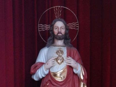 Serce moje otoczone cierniami, którymi niewdzięczni ludzie przez bluźnierstwa i niewierności stale ranią.